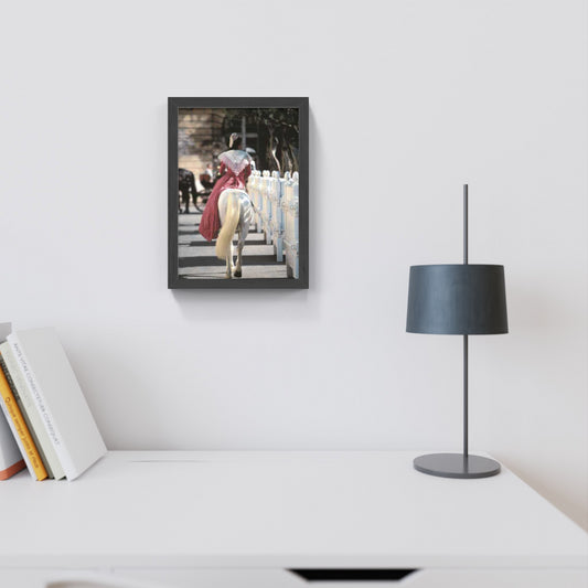 Carte Postale : "Arlésienne en robe fuchsia en amazone sur un cheval Camargue" de Gilles MARTIN-RAGET