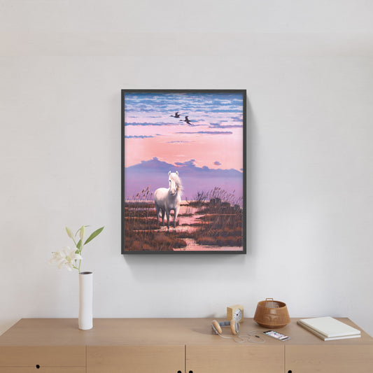 Affiche "Cheval Camargue au soleil couchant" de Jean MARIGNAN