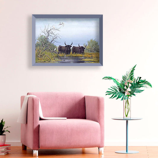 Affiche "Taureaux de Camargue au Marais" de Jean MARIGNAN