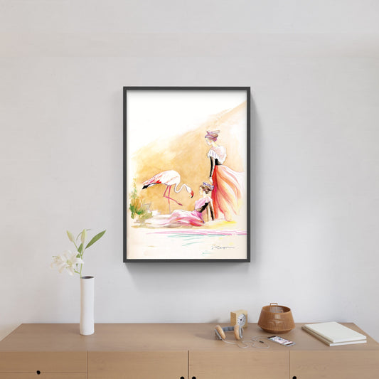 Affiche "Croquis d'Arlésiennes et flamant rose" de Danielle RASPINI