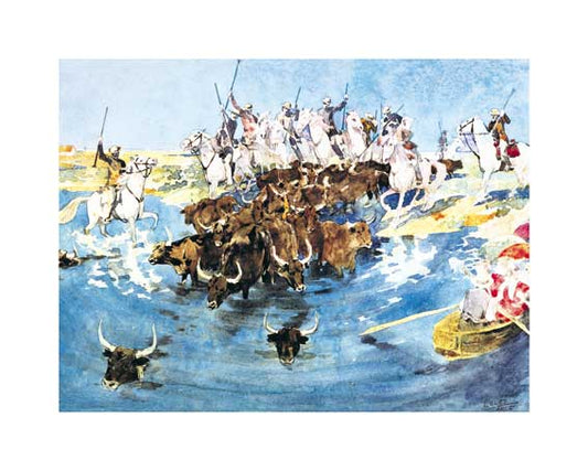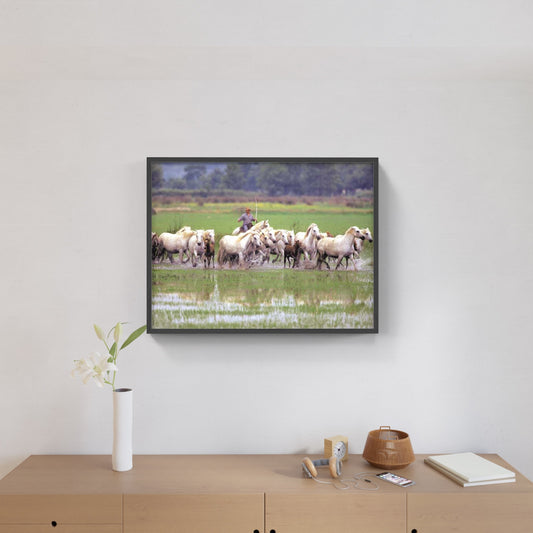Affiche : "Chevaux Camargue au marais avec un gardian" de Gilles MARTIN-RAGET